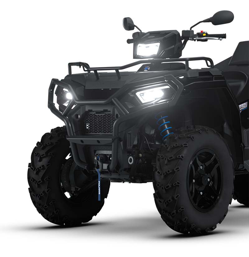 • 3,500 Lb. (1,588 kg) Polaris HD Vinch med syntetisk lina och NYTT automatiskt stopp.